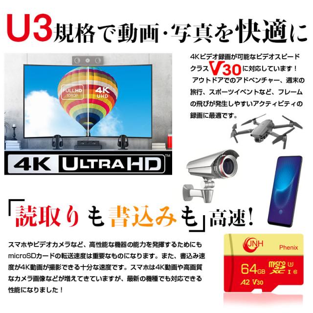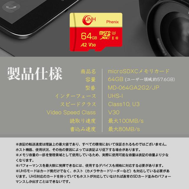 マイクロsdカード microSDXC 64GB JNH R:100MB/s W:80MB/s Class10 UHS-I U3 V30 4K Ultra HD A2対応 国内5年保証 Nintendo Switch/GoPro動作確認済 ポイント消化
