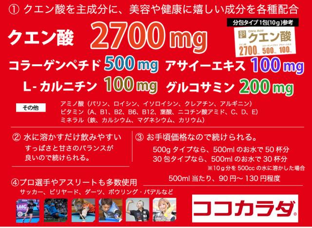 ■関連ワード:クエン酸飲料/スポーツドリンク/パウダー/粉末/クエン酸 溶かす/クエン酸 食用/ダイエットドリンク/コラーゲン/アサイー/グルコサミン/カルニチン/スポーツ飲料/チーム用/ビリヤード/ダーツ/ボウリング/パデル/サッカー/フィットネス/ダイエット/徳用タイプ/溶かして飲む/ココカラダ クエン酸/ここからだ/ランニング/ジョギング/アンチドーピング