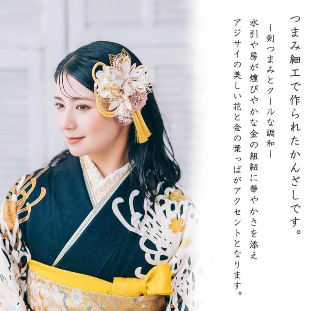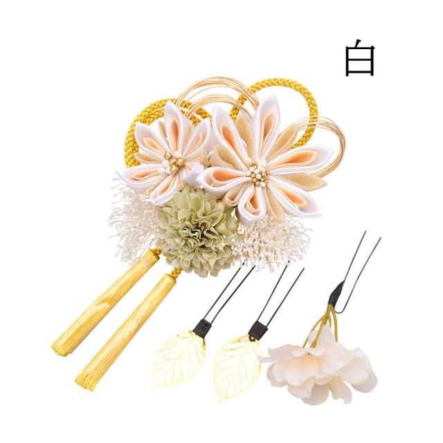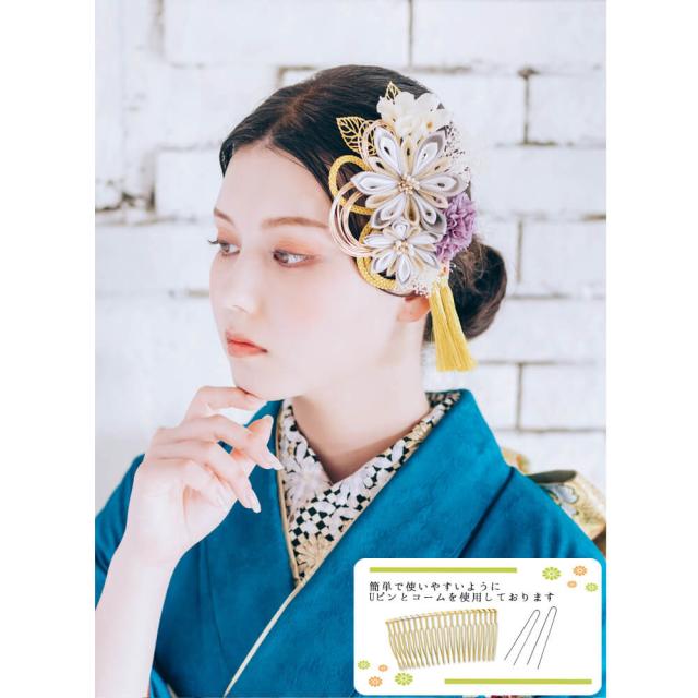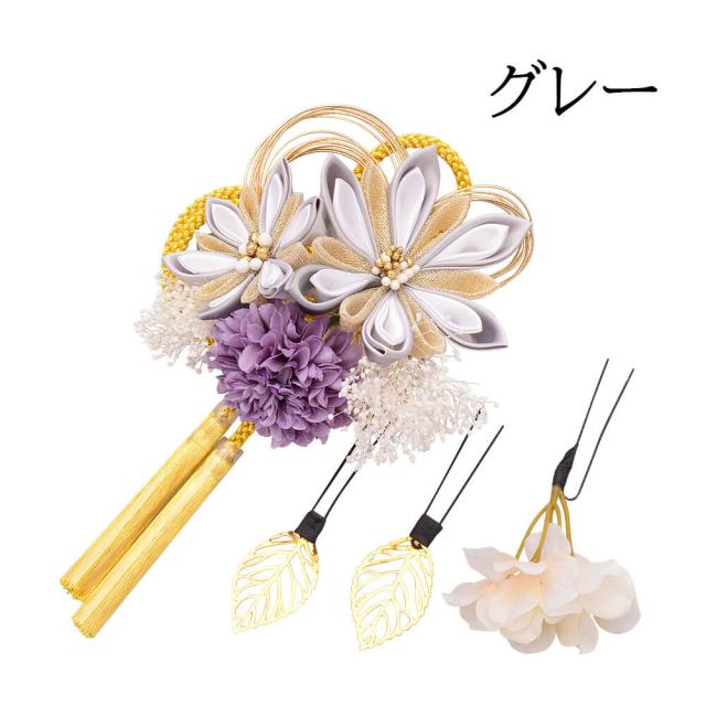 髪飾り かんざし 成人式 つまみ細工 水引 振袖 前撮り 袴 花 ホワイト グレー 大きい Uピン コーム ウエディング