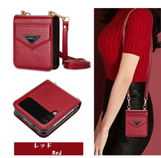 Galaxy Z Flip7 5G Galaxy Z Flip5 5G ケース 縄掛け Galaxy Z Flip6 5G 背面カバー 肩掛け 首かけ 斜めがけ ショルダー ストラップ付き ZFlip4 Z Flip3 5g 携帯カバー 財布型 カード収納 薄型 軽量 ギャラクシー ゼット フリップ4 ゼット フリップ3 スマホケース 耐衝撃