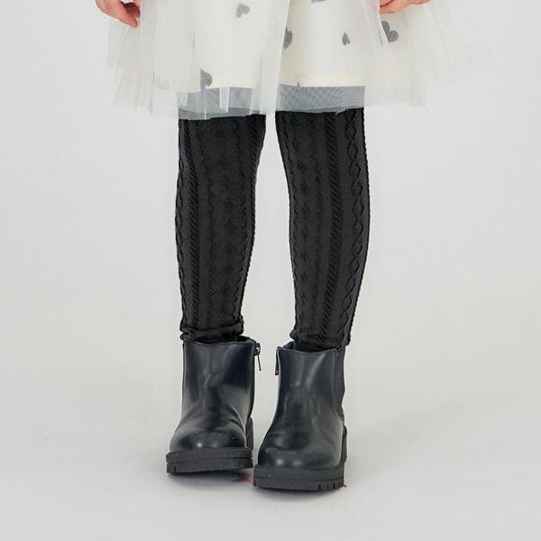 apres les cours(アプレレクール)のスパッツ・レギンス「お花ケーブルソックス&レギンスセット」は、足元からおしゃれになれるデザイン。おようふくとのスタイリングも楽しんで。