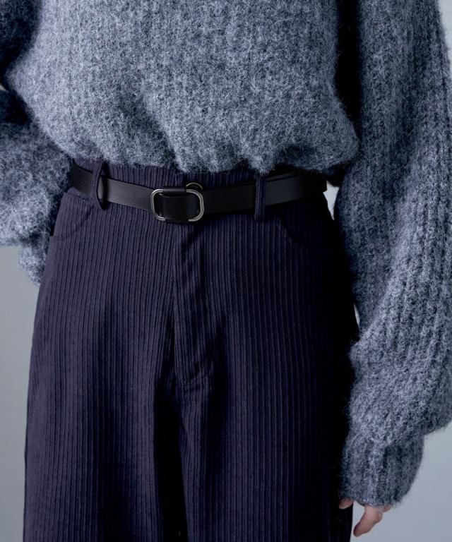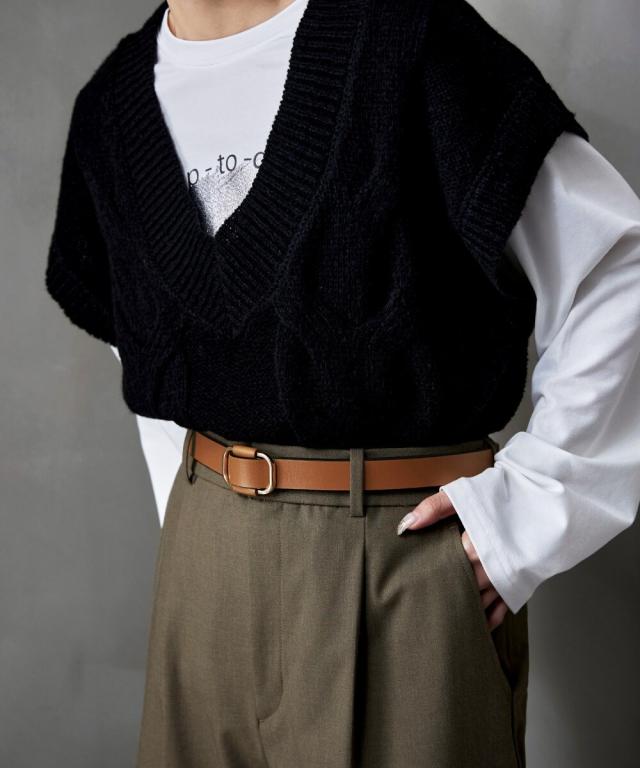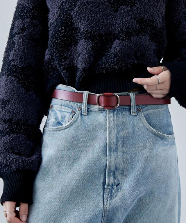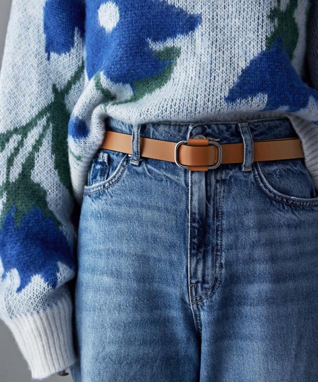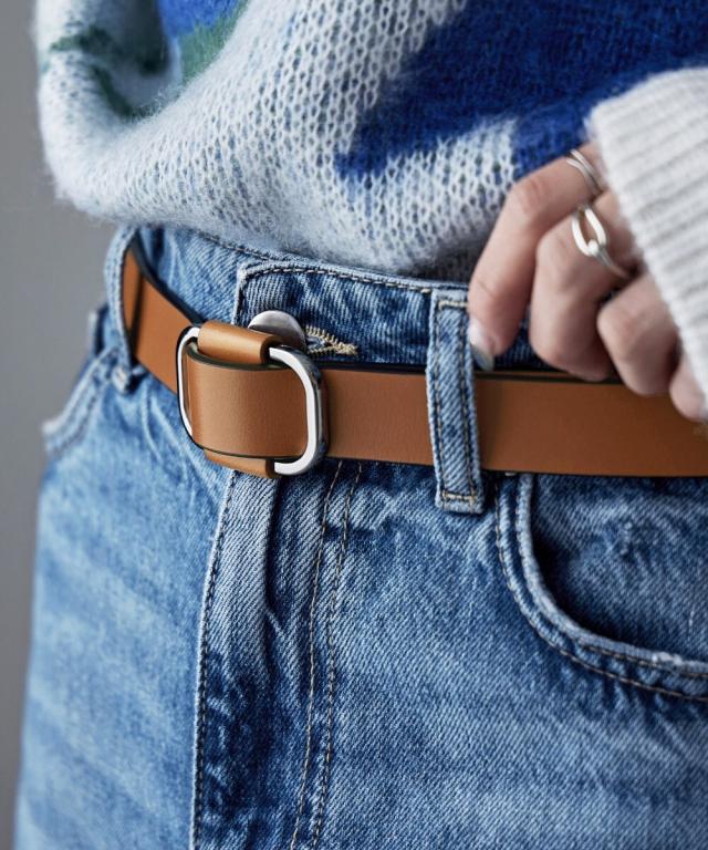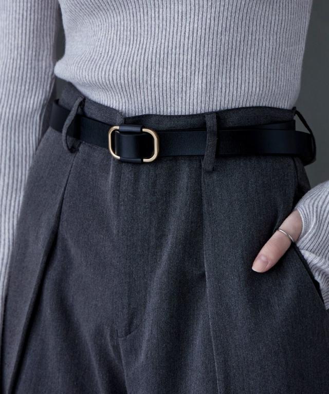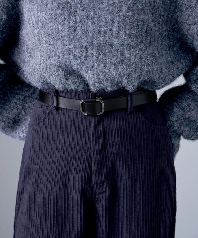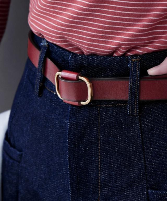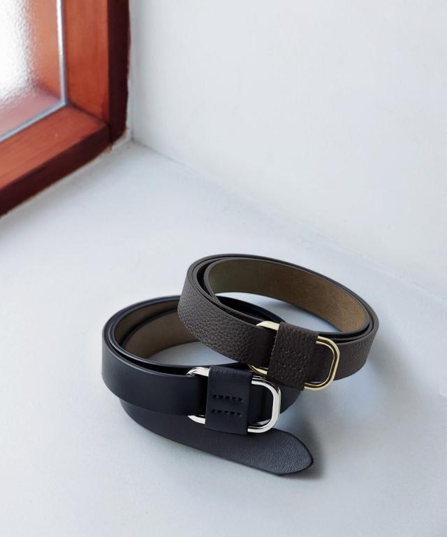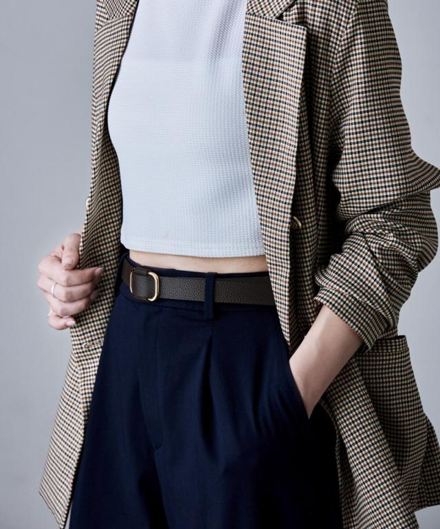 濃色にも淡色にも馴染みやすいカラーは、どんな色とも親しめるから、さりげなくベルトで色を取り入れられる。