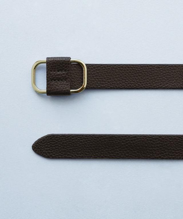 艶感のあるシックなゴールドとシルバーのスクエアリングバックルにベーシックなブラウンとブラックが、