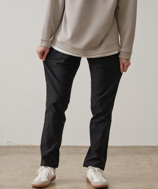 優れたストレッチ性により、ノンストレスですっきり美しいシルエットを実現します。履き心地はイージーパンツさながらですが、トラウザーポケットや前開きジップなど、本格的なボトムスの仕様となっています。