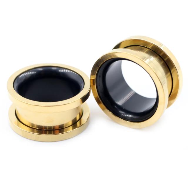 [2G 0G 00G 12mm ボディピアス]ダブルカラートンネル ボディーピアス /ゴールドxブラック 2ゲージ 0ゲージ 00ゲージ 12.0mm 1/2 ハーフインチ 12ミリ 6mm 8mm 10mm 黒色 金色 メンズ レディース ネジ式 ネジタイプ プラグ ホール 2色 面白い かっこいい プレゼント 人気