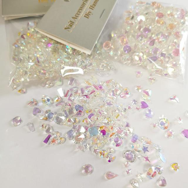 ◆商品名:サムコス ラインストーン ネイルパーツ 約120粒セット 小さめ オーロラ幻彩 キラキラ 立体 平底 異形 ネイルストーン DIY カラー 混合色 <br>
