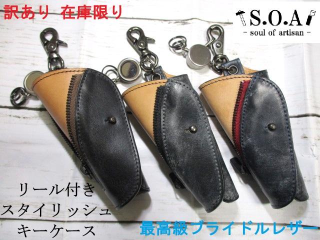 SALE キーケース メンズ S.O.A おしゃれでスタイリィシュ 最高級なブライドルレザー使用 リール付 本革 日本製 こだわりの逸品 おまけ付き 訳あり 在庫限り