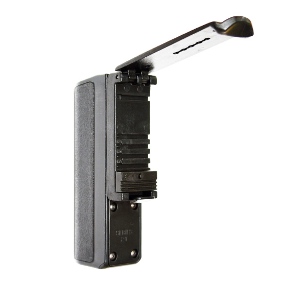 回転式サイドブレークスカバードはASP純正21インチフリクションバトン (振り出し警棒)に対応しています。 また ホルスターの角度は垂直以外に左右それぞれ3段階に角度変更が可能です。(左右は最大で水平角度まで)設定できる仕様になっています。 材質は銃器に使用される軽量ポリマーで仕上げられとても軽くしなやかで強固です。 バトンは縮めても伸ばした状態でも使用できます。