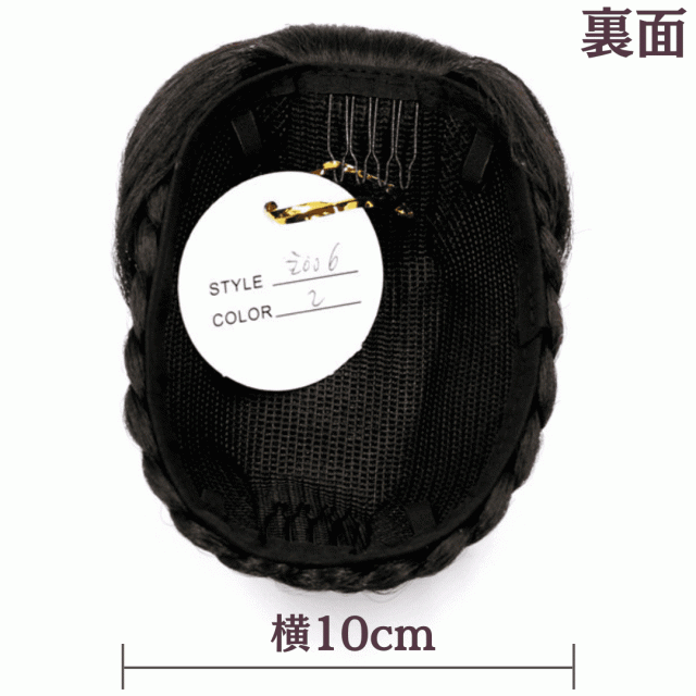 | 2段階固定 | 上下2個のコームとUピン紐でしっかり固定。小さ目のお団子が出来れば使用可能 |