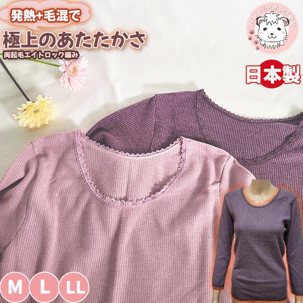 あったか インナー 8分袖 長袖 レディース 発熱 毛混 エイトロック編み 厚地 秋冬 アンダーシャツ 日本製 M/L/LL おためし