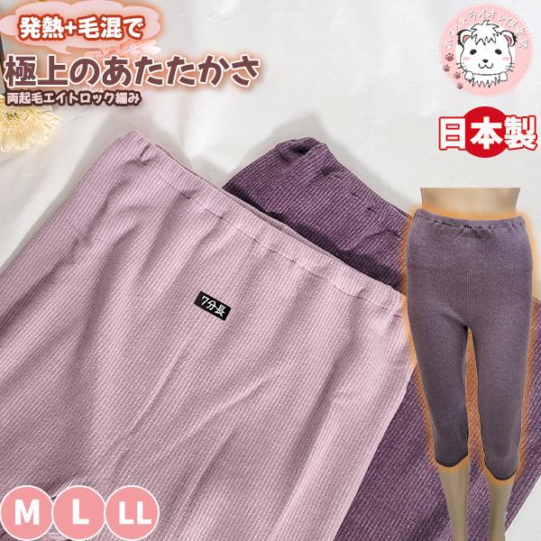 あったか インナー 7分丈ボトム レディース 発熱 毛混 エイトロック編み 厚地 秋冬 スパッツ レギンス 日本製 M/L/LL おためし