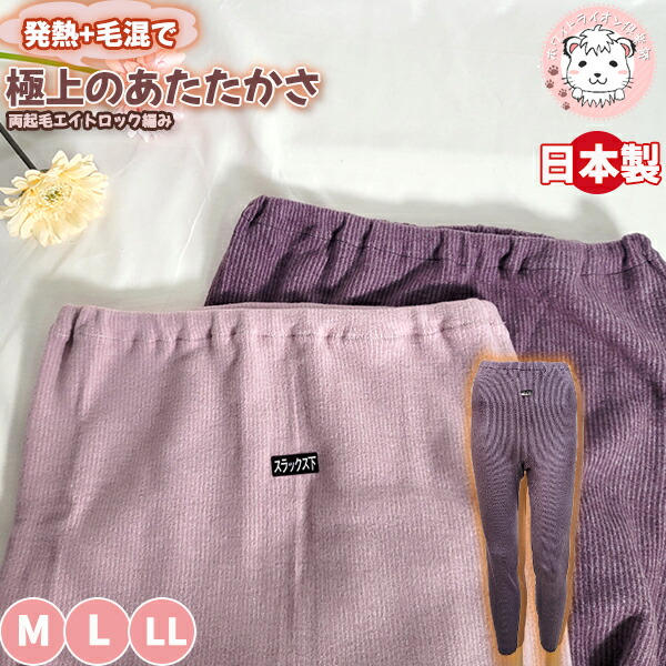 毛混 エイトロック編み スラックス下 発熱 厚地 防寒 保温 日本製 M/L/LL | あったか 9分丈 インナーボトム レディース 秋冬 スパッツ レギンス