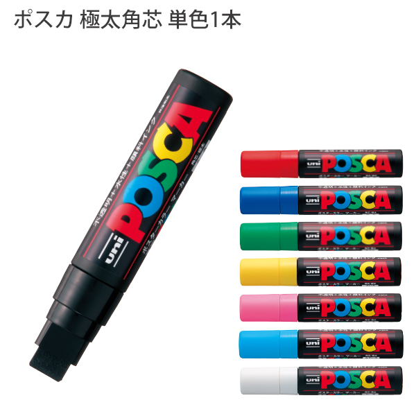 三菱鉛筆 POSCA ポスカ PC-17K 極太角芯 水性顔料マーカー 単色1本 黒 / 赤 / 青 / 緑 / 黄 / 桃 / 水 / 白 濃い色の上にも書ける 重ね書きが出来る 乾けば水に流れない 金属・プラスチック・ガラスにも書ける