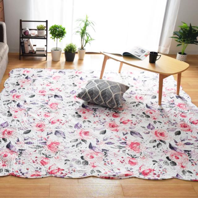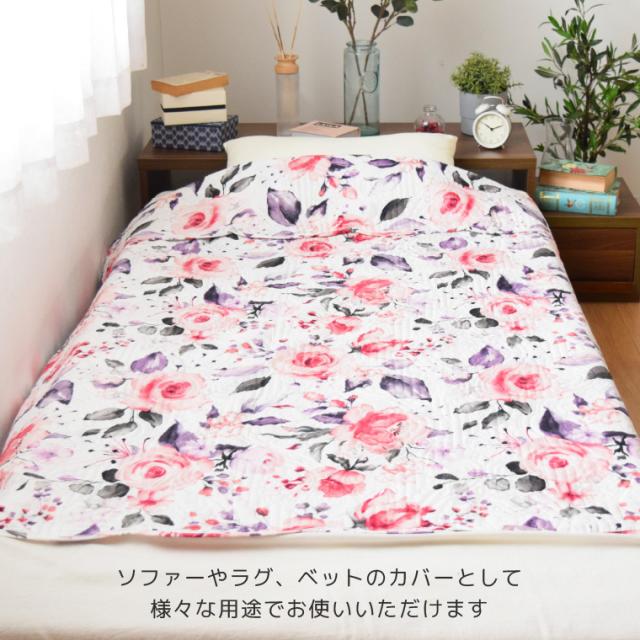 マルチカバー キルト 北欧 約190×190cm 正方形 洗える こたつカバー マルチクロス ホットカーペットカバー ベットカバー ソファカバー かわいい おしゃれ カバー バラ 薔薇 柄