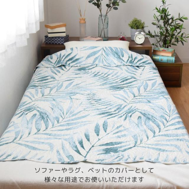 マルチカバー キルト 北欧 約140×190cm 長方形 洗える こたつカバー マルチクロス ホットカーペットカバー ベットカバー ソファカバー かわいい おしゃれ カバー ヤシリーフ 植物 ベノア 柄