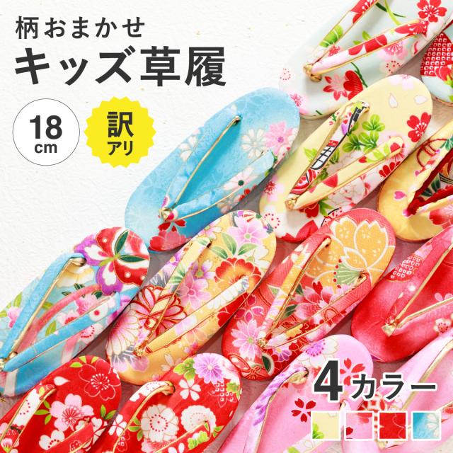 草履 七五三 訳あり 柄おまかせ ぞうり 3歳 18cm 女の子向け 女児用 子供向け こども用 赤 ピンク 黄色 水色