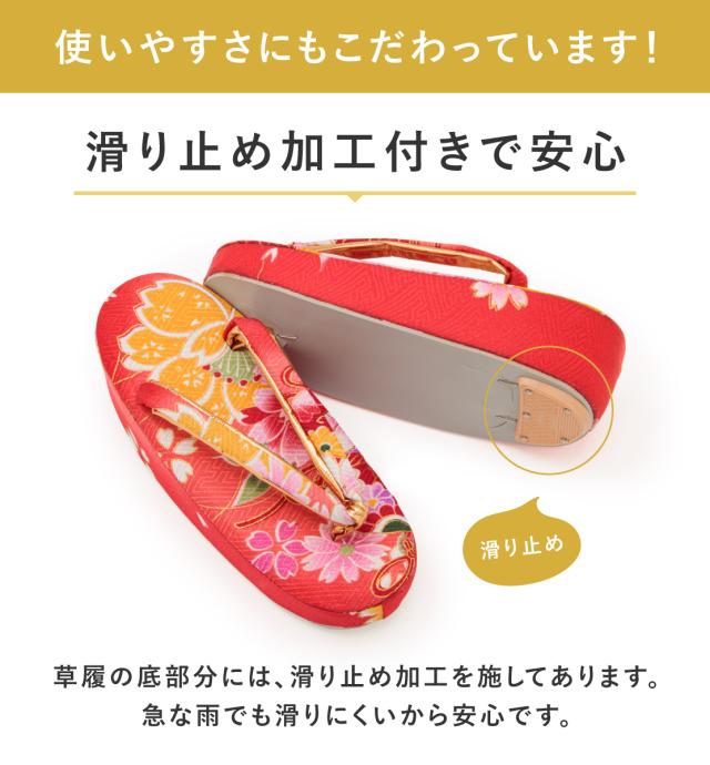 - 可愛いです 奇跡的に着物の柄と合った草履が届き良かったです 鼻緒が硬いので使用する1ヶ月以上前から手で拡げたりして娘の足に馴染むようにしました 七五三当日には痛がる様子もなくカラコロ音を立てて歩いてくれました