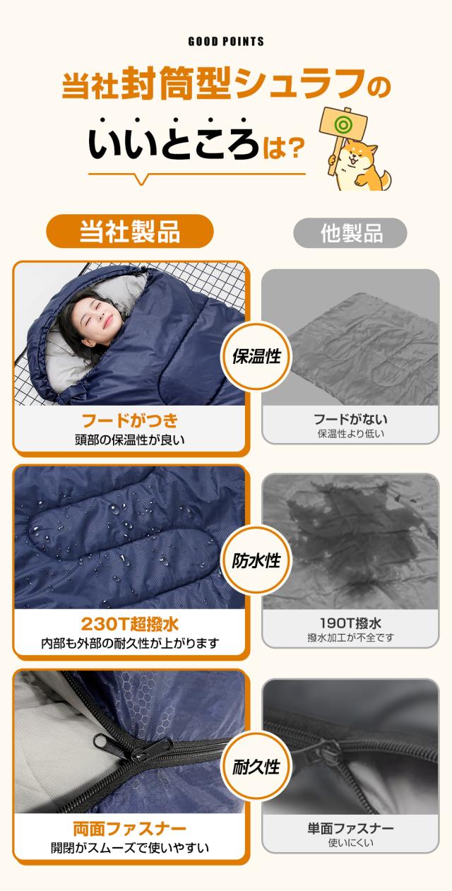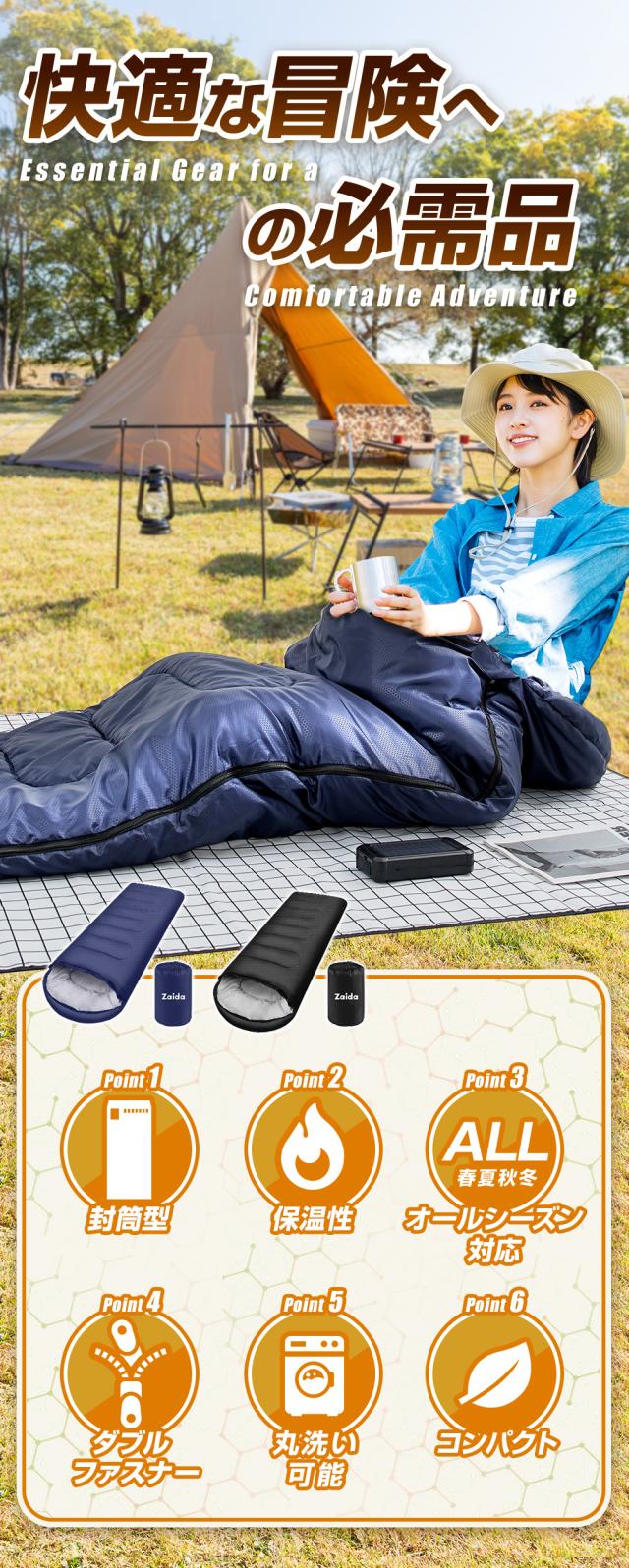 寝袋 シュラフ 車中泊 グッズ 封筒型 コンパクト 春 夏 秋 キャンプ用品 旅行 ソロキャン 夏用 冬用 軽量 洗える アウトドア フード付