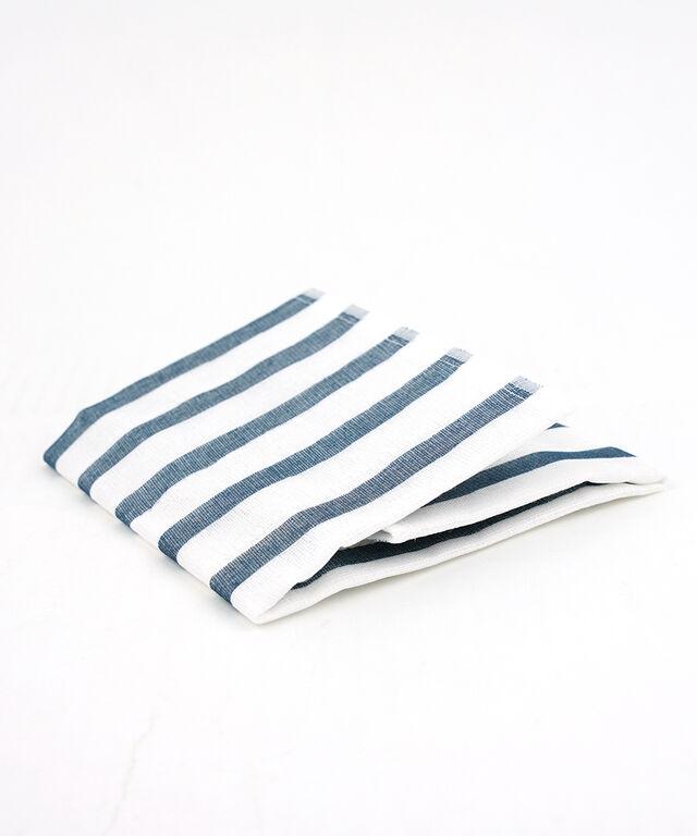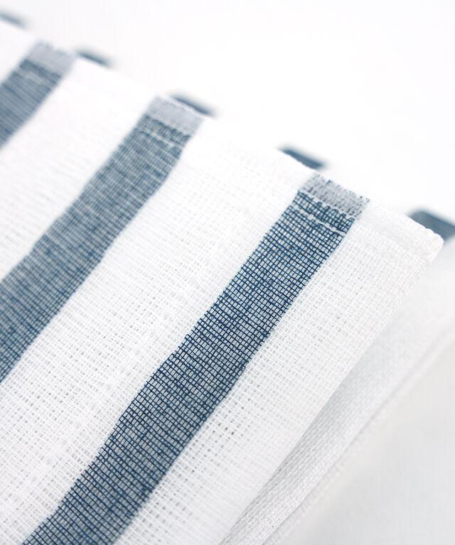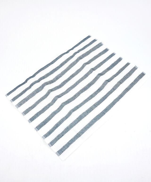 揺らぎのある縞模様を捺染し、かや織ふきんに仕上げました。
