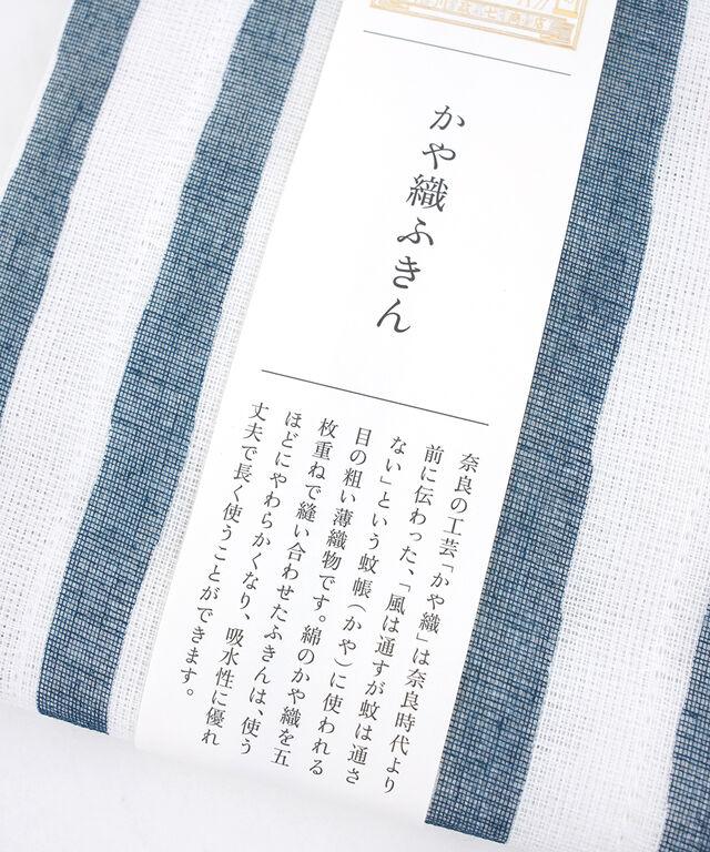 奈良県の特産品である「かや織」を5枚重ねて縫い合わせたふきん。