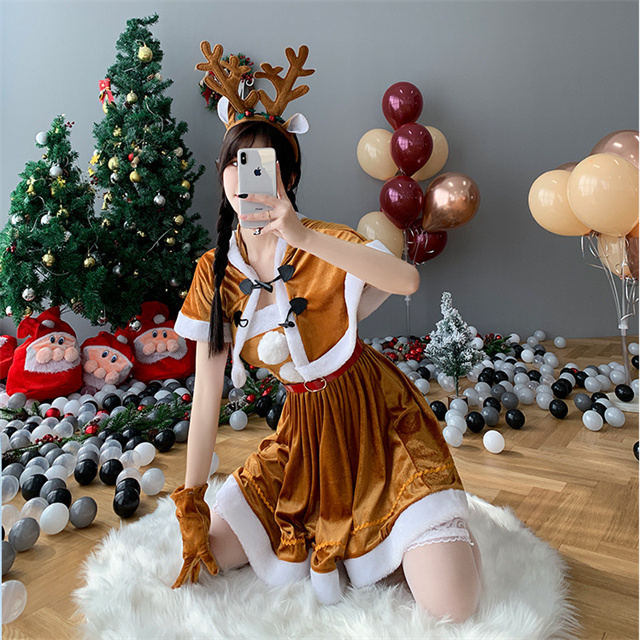 レディース トナカイ コスプレ サンタ クリスマス5点セット コスチューム 衣装ワンピース コスチューム 衣装 仮装文化祭 学園祭 新作