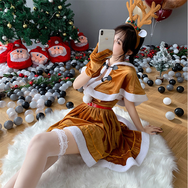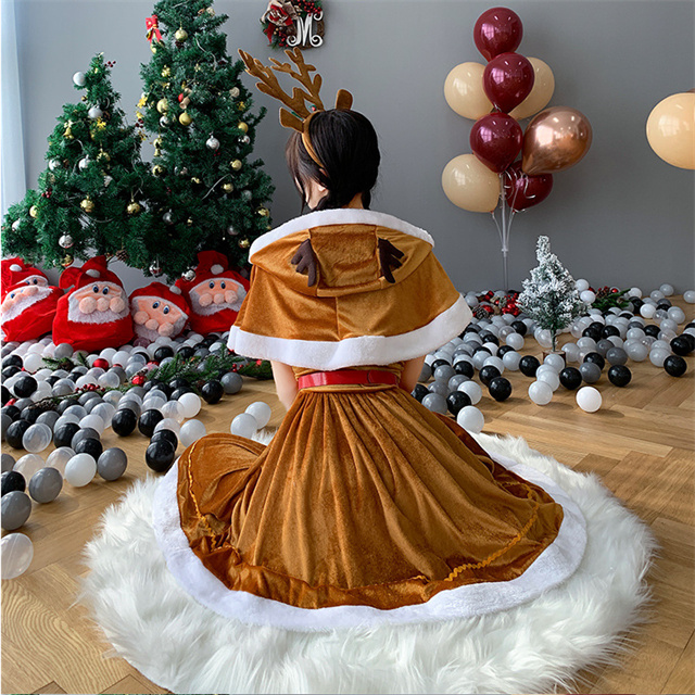■セット内容:トナカイのカチューシャ+ワンピース+マント+ベルト+手袋の5点セット
