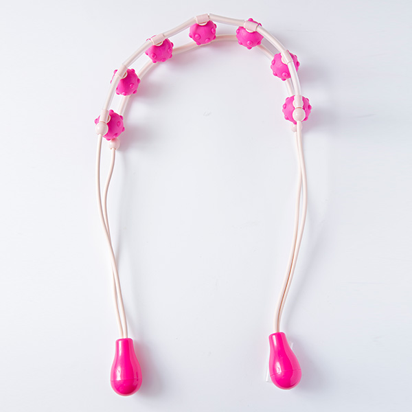 | 腰・肩・背中の筋肉を心地よくほぐす。 両手でグリップを持ち、ロープを動かすと柔らかなロープと7つのボツボツボールが身体にフィットし、肩や腰など筋肉を心地よくほぐします。 |