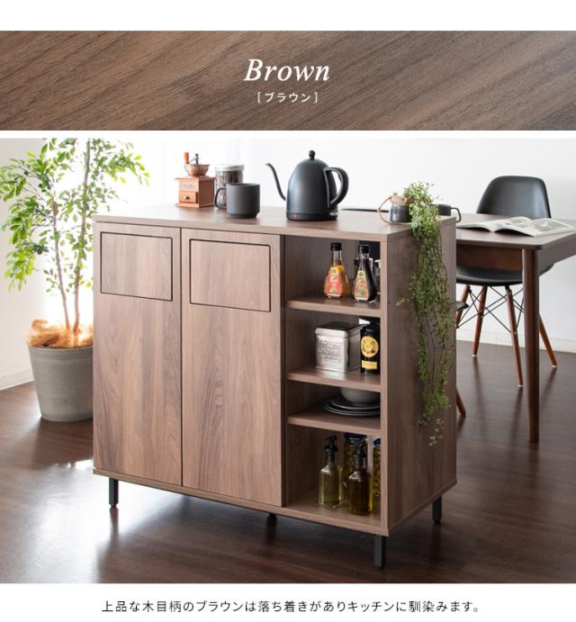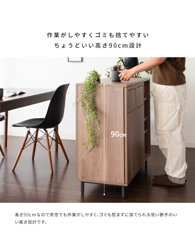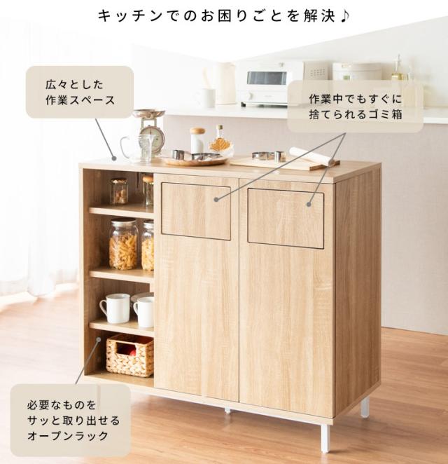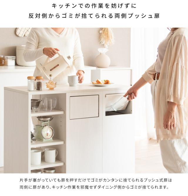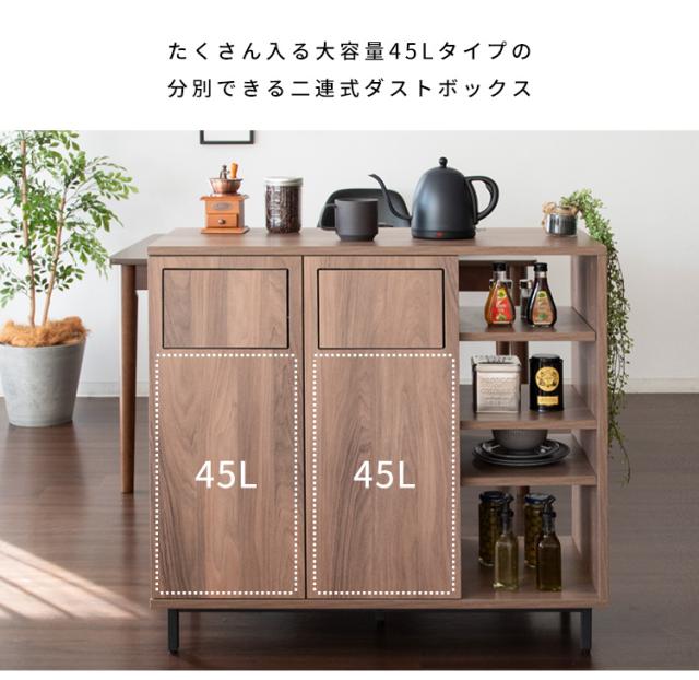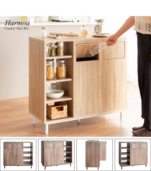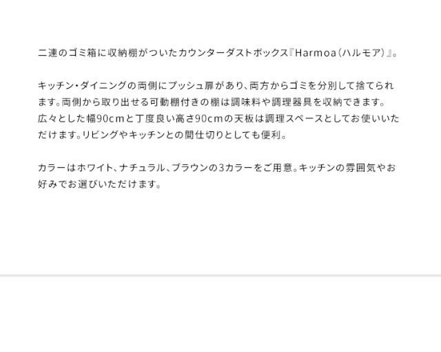 カウンターダストボックス 幅90cm Harmoa(ハルモア) 3色対応 キッチンカウンター キッチンボード ゴミ箱 45L 2連式 プッシュ扉 収納棚 ラック 食器 調理器具 キッチン ダイニング ダストボックス 木製 おしゃれ