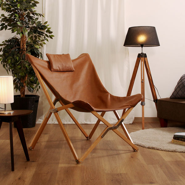 ラウンジチェア バタフライチェア ブラウン 折りたたみ まくら付き 天然木 おしゃれ ダイニングチェア 北欧 リビングチェア ヴィンテージ