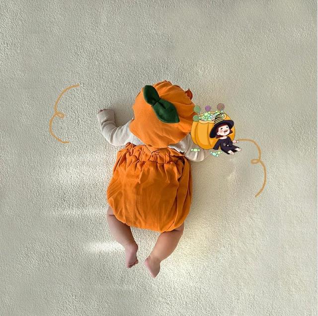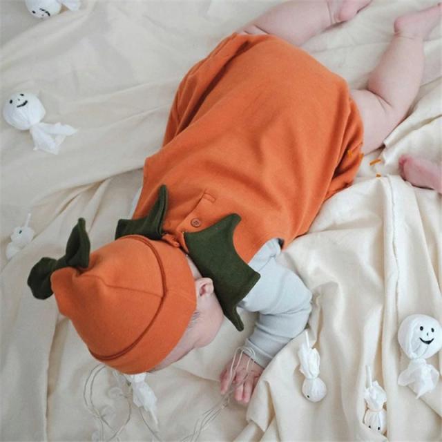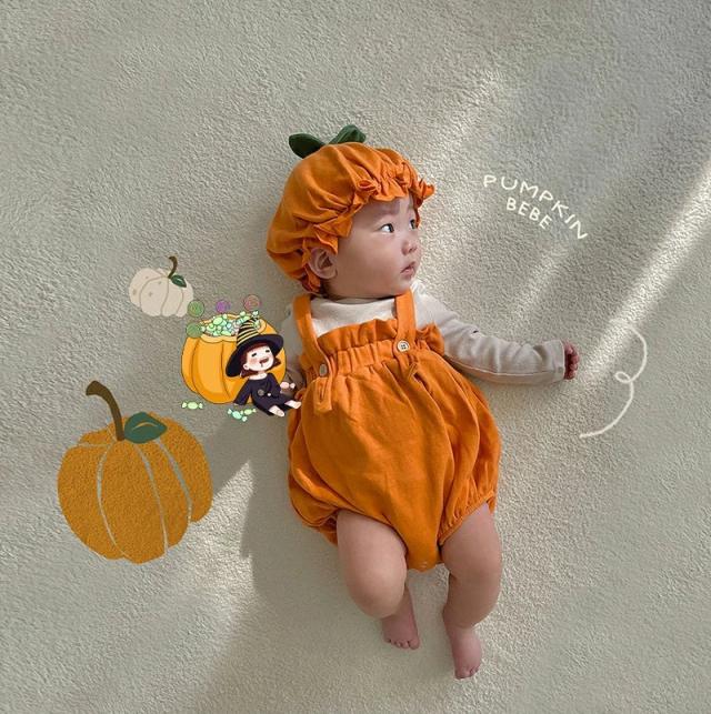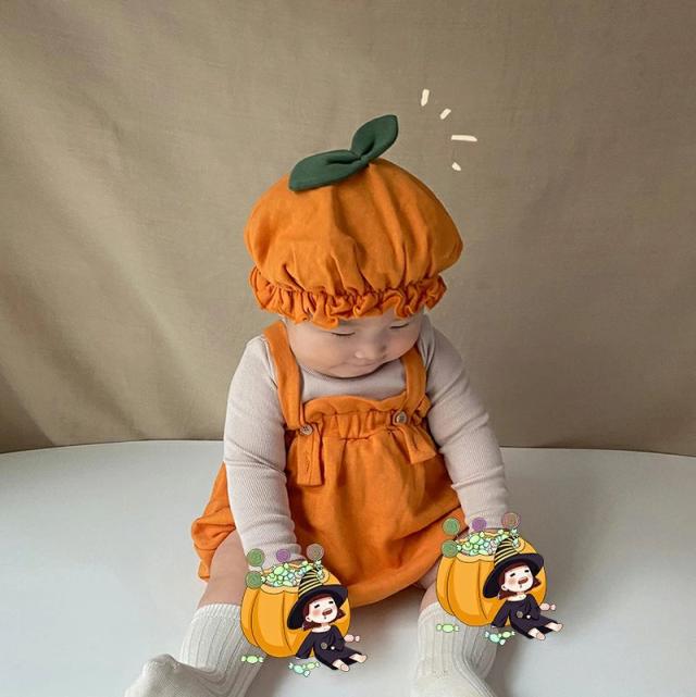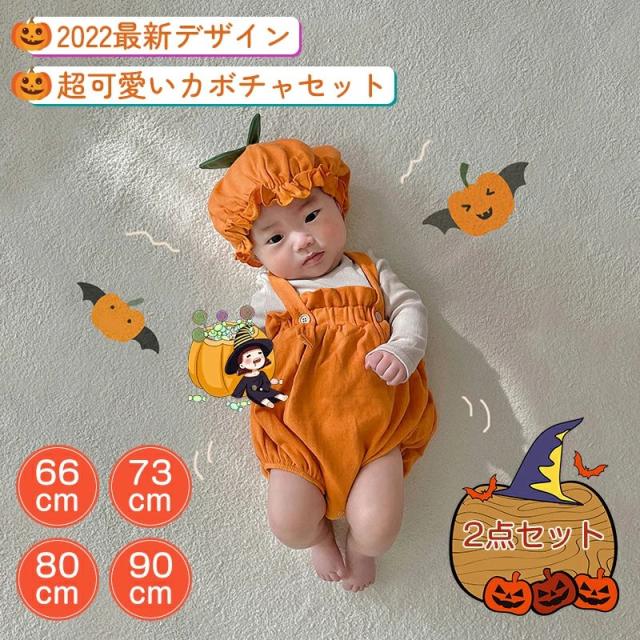 ハロウィン ベビー カボチャ ハロウィン コスプレ 子供 衣装 ロンパース かわいい かぼちゃコスプレ コスチューム ベビー 幼稚園 2点セット