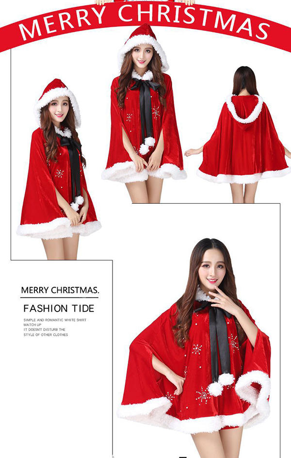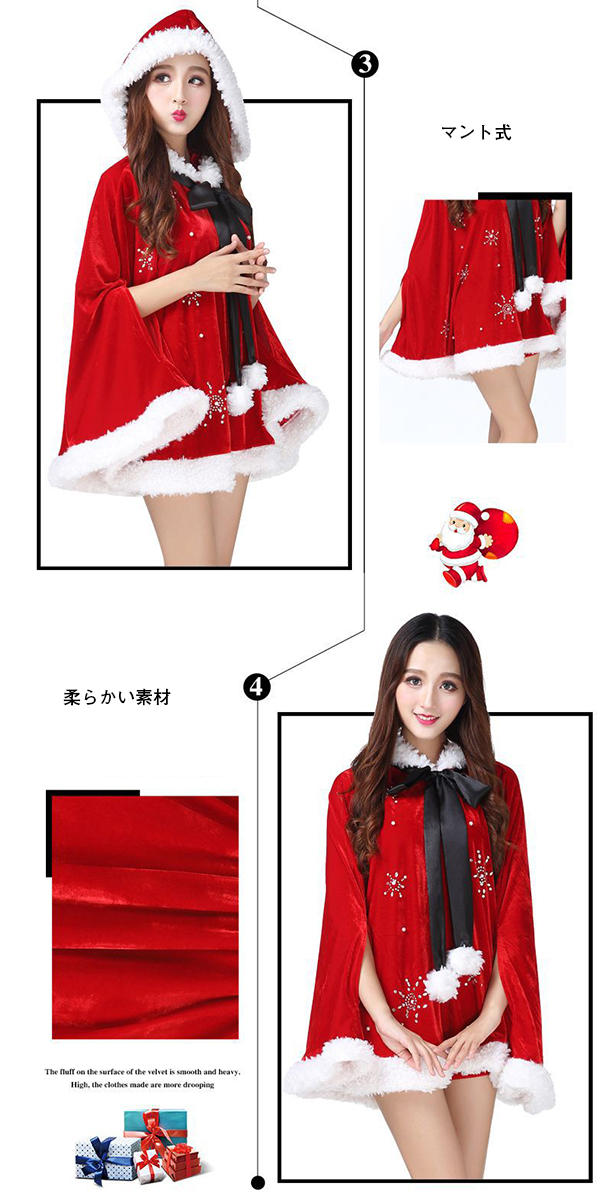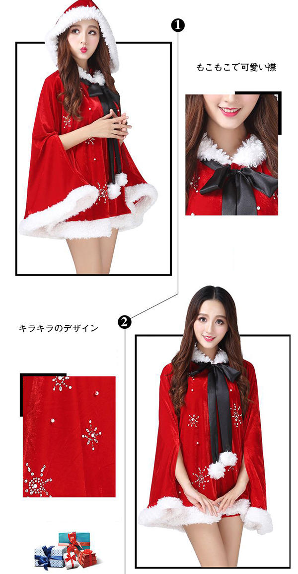 サンタ コスプレ レディース サンタクロース マント ポンチョ サンタコス サンタ 衣装 クリスマス コスプレ コスチューム 仮装 パーティー 女性 大人 可愛い 2点