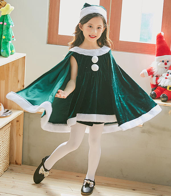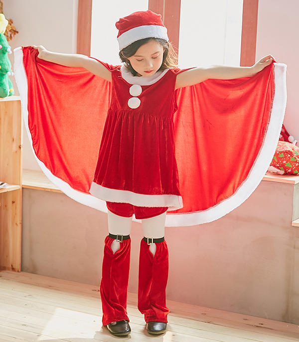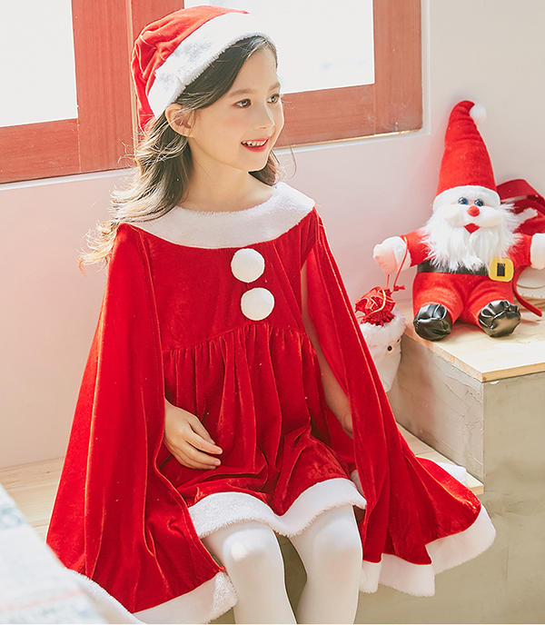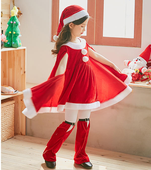 サンタ コスプレ衣装 女の子 ポンチョ サンタクロース サンタ服 キッズ クリスマス コスチューム マント サンタ コスチューム 子供服 帽子付き パーティー クリスマス キッズ服 ジュニア 演出服 ダンス衣装 送料無料