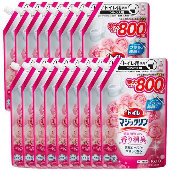 洗剤 日用消耗品 トイレ洗剤 【15個セット】トイレマジックリン 消臭洗浄スプレー 香り消臭 エレガントローズの香り スパウトパウチ800ml 花王 マジックリン 洗剤 トイレ用 送料無料