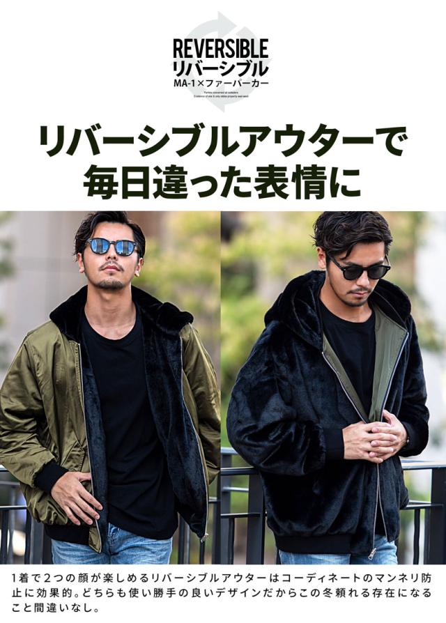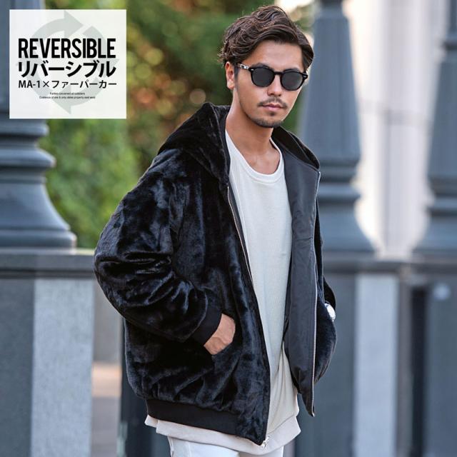 MA-1 ファーパーカー リバーシブル メンズ おしゃれ MA-1ジャケット MA1 ファージャケット フード ブルゾン 無地 大きいサイズ オーバーサイズ ゆったり ブラック 黒 防寒 暖かい CavariA ユニセックス 男性 男 服 秋 冬 秋冬 ファッション 即日発送 [CARE23-19]