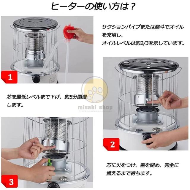 赤外線熱を前方に放射し、空気とほこりを取り除きます。ウィックタイプの燃料供給、最大100%の燃焼率です。燃焼煙突は特別な金属製であるため、灯油は完全に燃焼することができ、加熱はより速く効率的です。