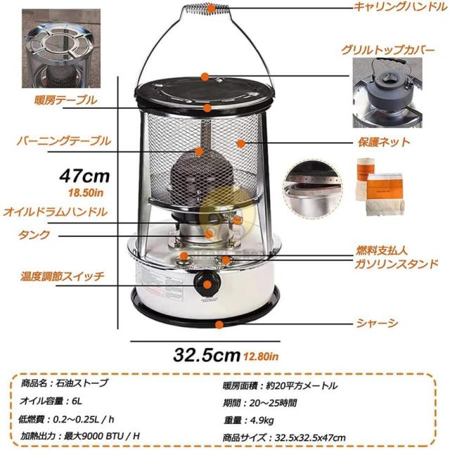 石油ストーブ 対流式 灯油暖房ストーブ 6L 省エネ 赤外線熱 高効率燃焼 小型 軽量 ストーブ 屋外 防災 部屋 キャンプ 防寒対策 緊急設備 w341