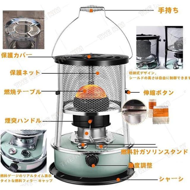 灯油ストーブ キャンプ 石油ストーブ 暖房ストーブ 持ち運び便利 360°のサラウンド加熱 多機能 で伸縮して おしゃれ 省エネ 高効率 旅行用品 アウトドア