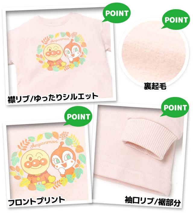 【送料無料】女児 ベビー 裏起毛 長袖 スウェット シャツ アンパンマン あったか 保温 ゆったり 女の子 iw-0959【メール便対応】