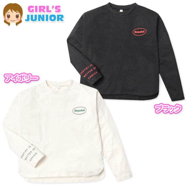 【送料無料】女児 ジュニア 本体綿100% 長袖 Tシャツ ゆったりシルエット 前後差ラウンド裾 子供服 女の子 nw-1157【メール便対応】