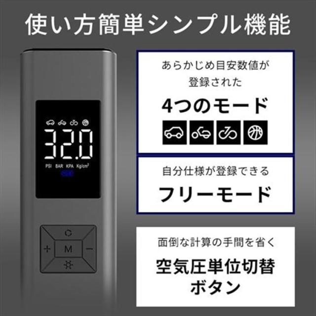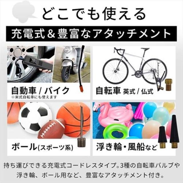 車、自転車、ボール、プールなどにすぐに空気を入れる事が可能。