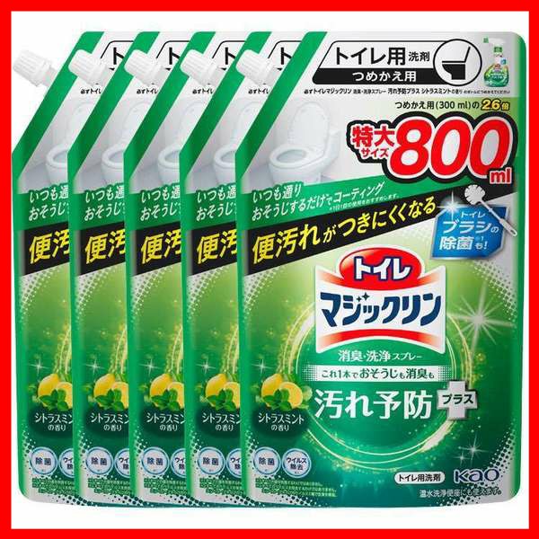 洗剤 日用消耗品 トイレ洗剤 【5個セット】トイレマジックリン 消臭洗浄スプレー 汚れ予防プラス シトラスミントの香り スパウトパウチ800ml 花王 マジックリン 洗剤 トイレ用