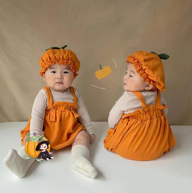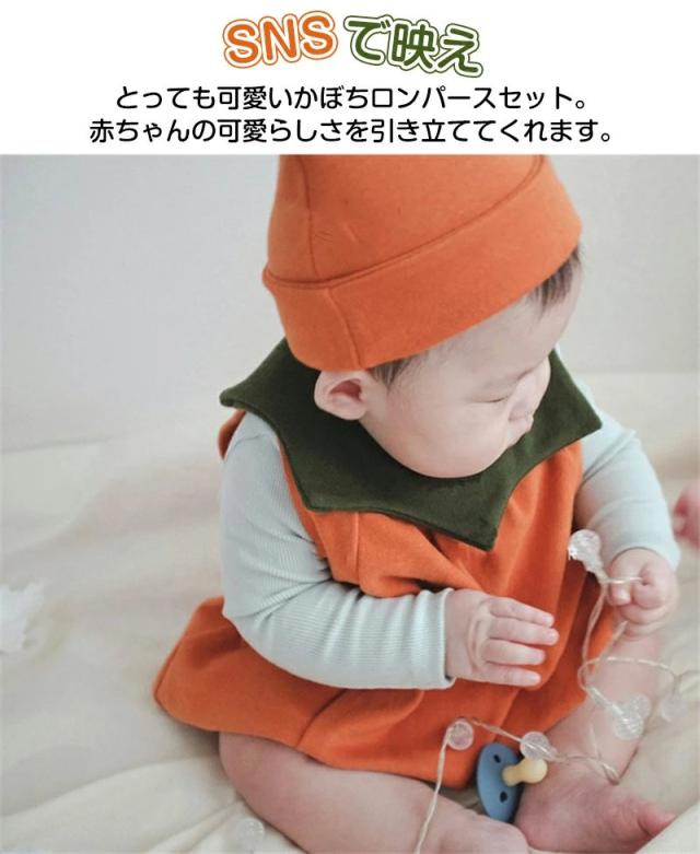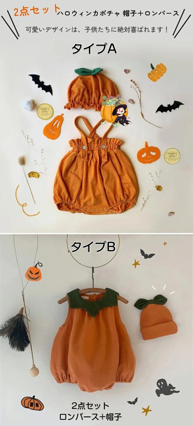 ハロウィン ベビー カボチャ ハロウィン コスプレ 子供 衣装 ロンパース かわいい かぼちゃコスプレ コスチューム ベビー 幼稚園 2点セット