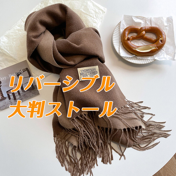 【男女兼用 無地リバーシブル 暖か 大判ストール マフラー 全12色】