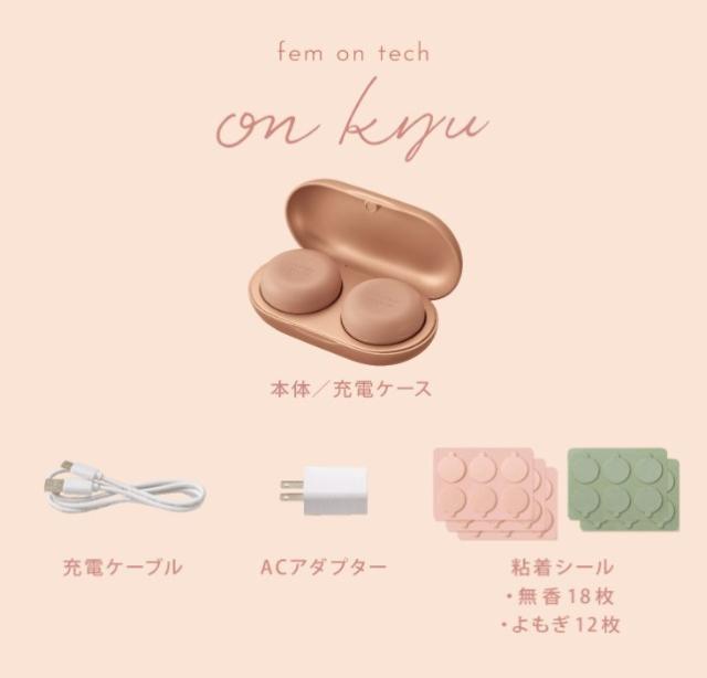 充電ケース、ACアダプター、充電ケーブル、粘着シール(無香18枚、よもぎ12枚)