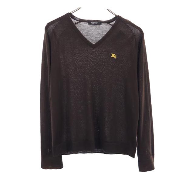バーバリーブラックレーベル 三陽商会 ウール 長袖 Vネック セーター 2 ブラウン BURBERRY BLACK LABEL ニット レディース