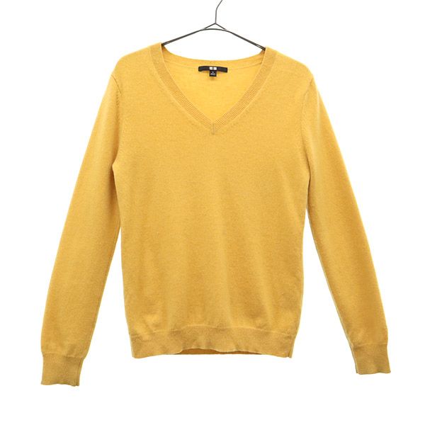 ユニクロ カシミヤ100% 長袖 Vネック セーター S イエロー UNIQLO ニット レディース