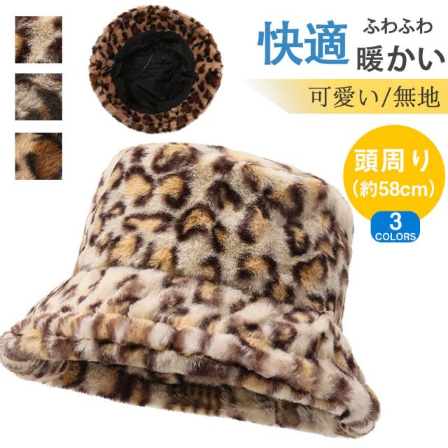 レディース 帽子 ファー ヒョウ柄 無地 ロシアンハット 秋冬 ファー コーデ おしゃれ ふわふわ 春 暖かい 小顔効果 プレゼ