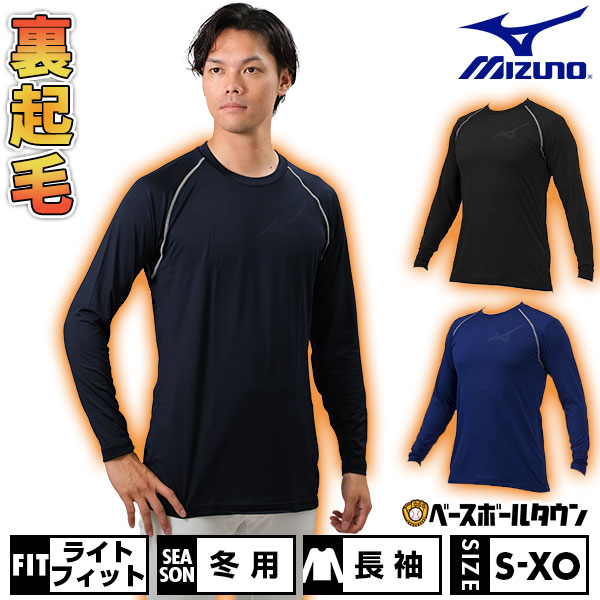 野球 アンダーシャツ 大人 冬用 長袖 丸首 ミズノ 裏起毛 防寒 保温 12JA2P83