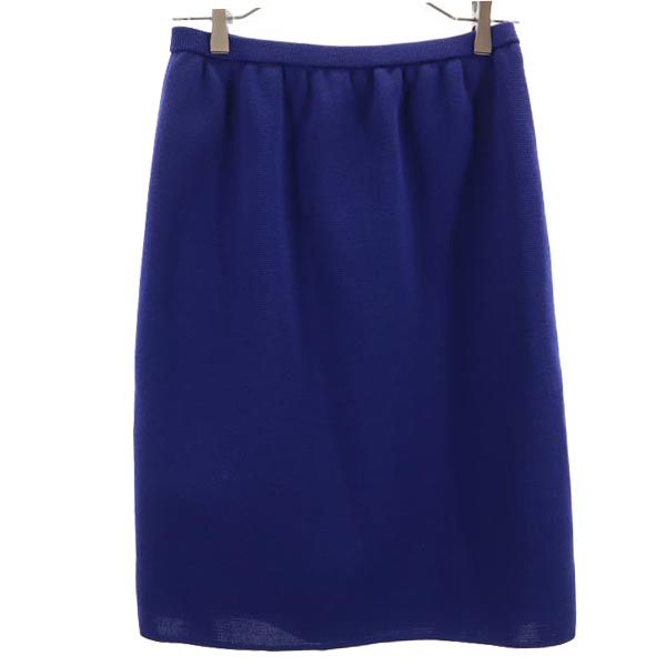 イヴサンローラン 日本製 ウール100% ミディ丈 スカート 11号 ブルー YVES SAINT LAURENT ウエストゴム仕様 レディース