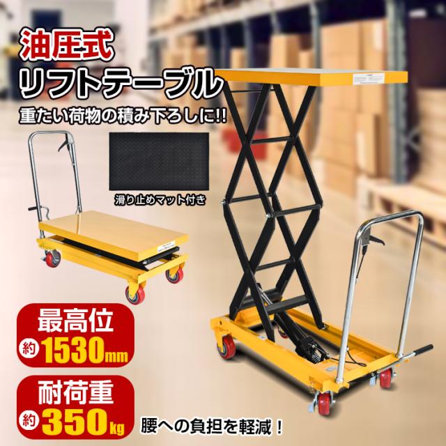 リフトテーブル 油圧式 耐荷重350kg 台車 油圧式昇降台車 滑り止めマット リフトアップ テーブルカート ハンドリフター キャスター 昇降台 油圧 リフト sg122